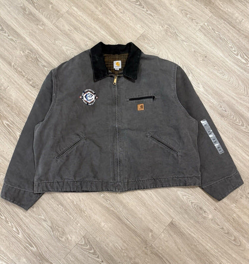 Crafted from tough cotton, it features a functional hood for added protection, making it perfect for workdays or casual outdoor wear. While this pre-loved piece shows some rips (refer to pictures), it only adds to its authentic, worn-in charm—ideal for fans of true vintage Carhartt.